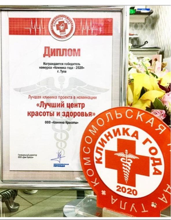- «Клиника Красоты» входит в Топ-10 лучших частных клиник по мнению пациентов за 2020, 2021, 2022, 2023, 2024 и 2025 год. Призёр престижной награды в конкурсах в номинации «Лучший центр красоты и здоровья».